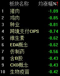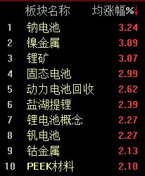 板块方面,电池、能源金属、MLCC、贵金属板块涨幅领先,而猪肉概念、退税商店、鸡肉概念表现不佳,领跌市场。